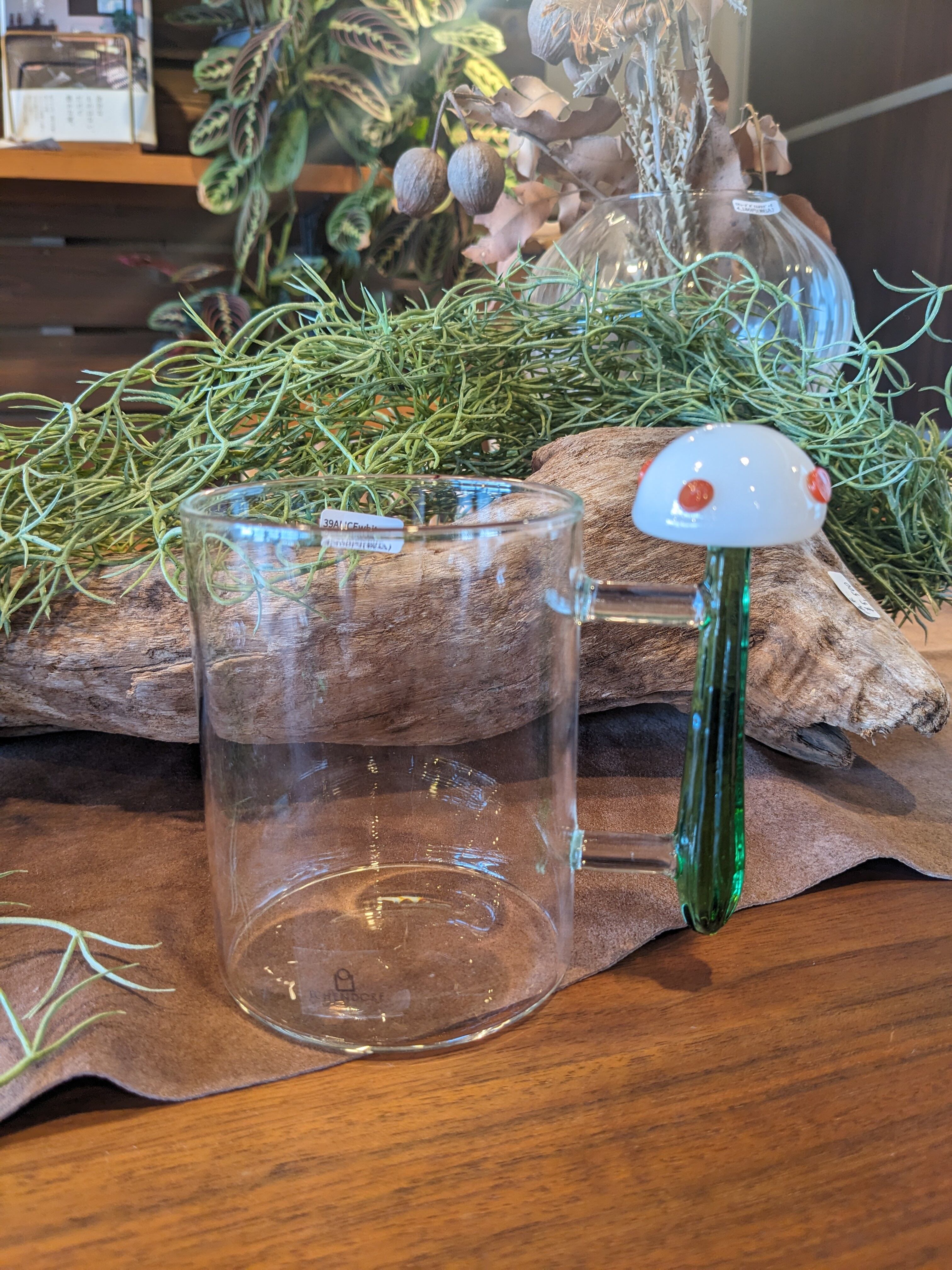 きのこが持ち手の可愛いグラスです。